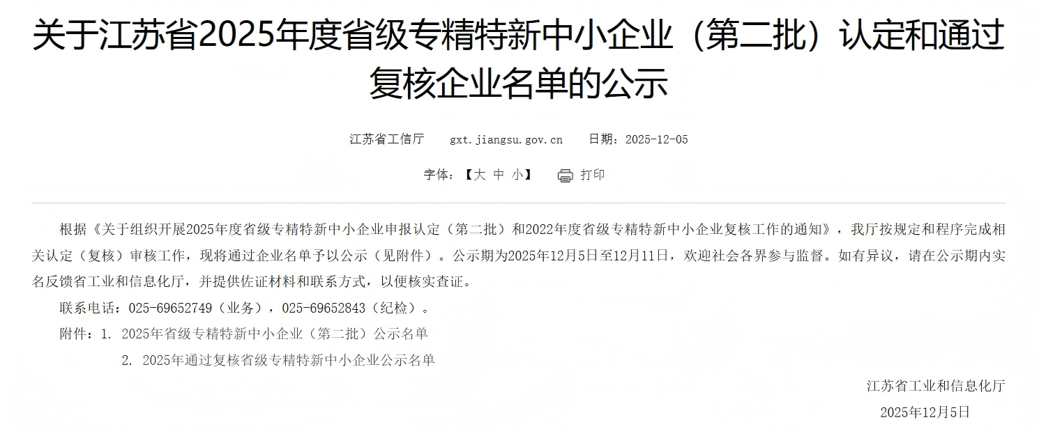 For this application, the company coordinated efforts across all departments, undergoing half a year of preparation and multiple rounds of intensive work. Since initiating preparations in March 2025, the company systematically compiled core materials including business achievements, R&D investment, and intellectual property amassed over more than a decade of deep cultivation in the iron and steel metallurgy niche, strictly following the Jiangsu Province SRUI SME Recognition Standards. After multiple rounds of meticulous organization and iterative optimization, the high-quality application was completed by the end of September. Following procedures including preliminary review by district and municipal industry and information technology departments, re-examination by the Provincial Department of Industry and Information Technology, and public announcement, final approval was successfully obtained.