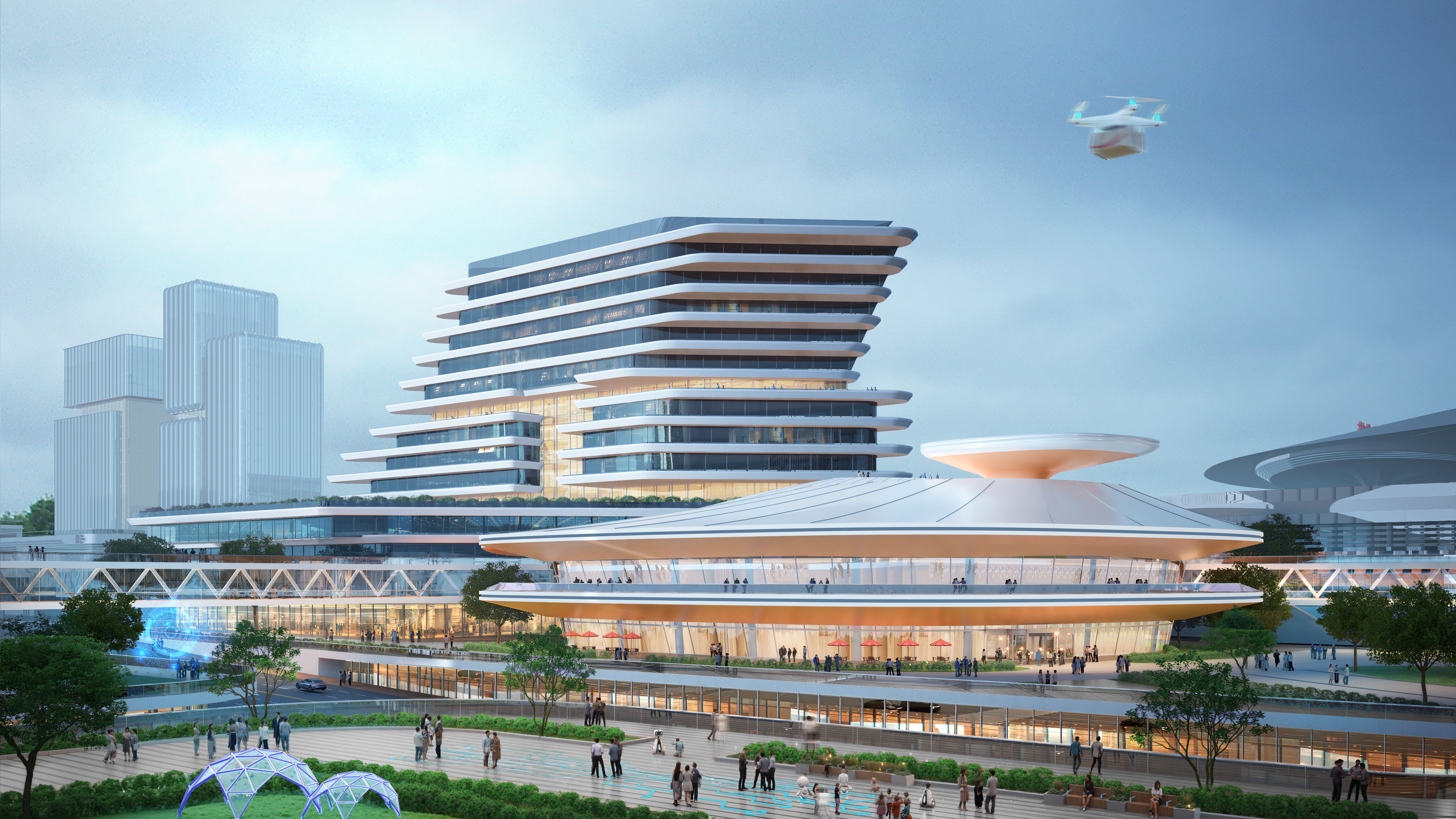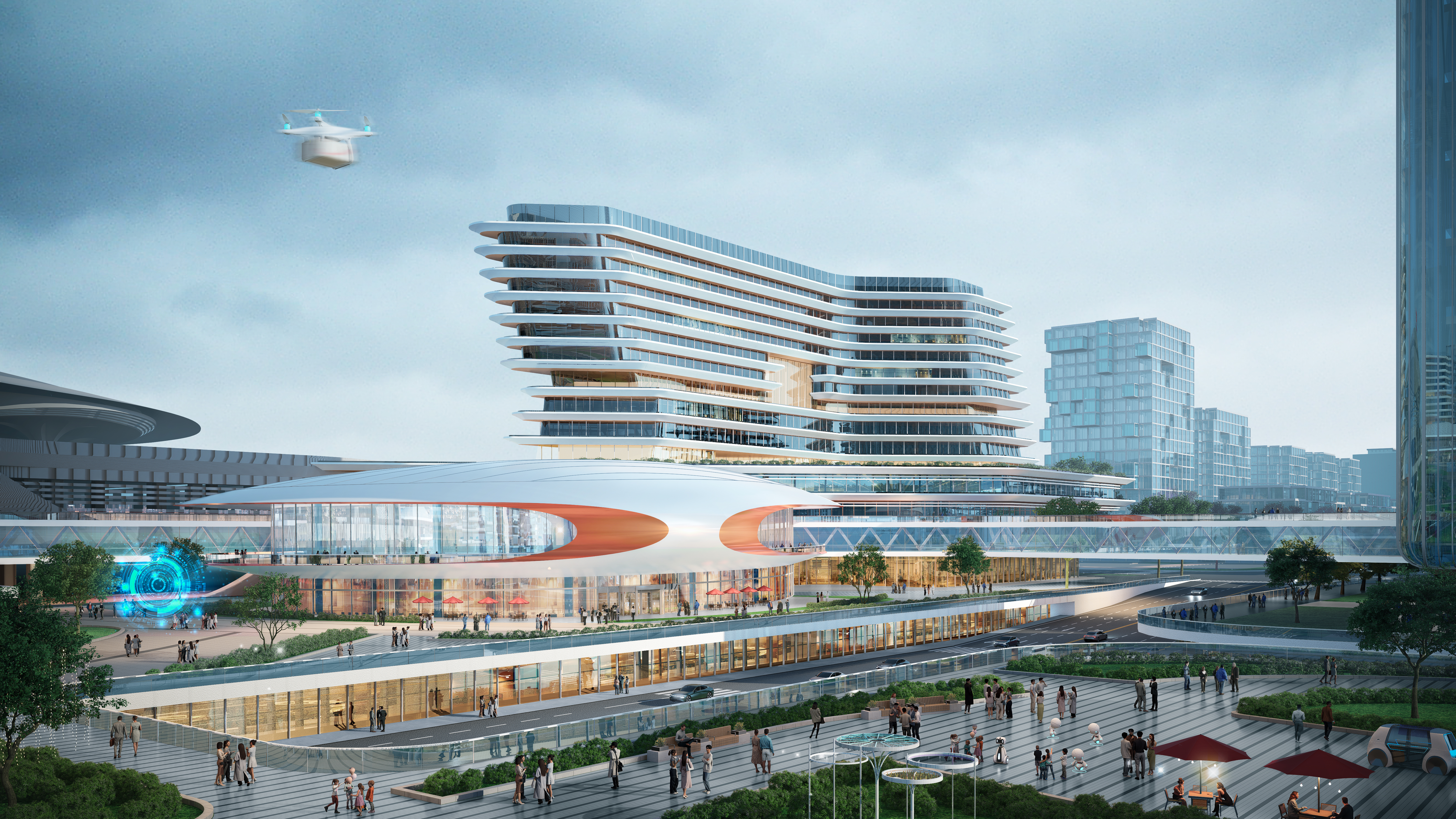 Located in the core area of the Nanjing North Station Hub Economic Zone in Jiangbei New District, the project covers approximately 7.99 hectares with a total construction area of about 326,000 square meters and a building height limit of 70 meters. It includes the four corner buildings south of Nanjing North Station, as well as the area enclosed by Zhannan 1st Road, Zhannan 2nd Road, Zhanqian 1st Road, and Zhanqian 2nd Road. The main components include talent halls, technology halls, an R&D transformation center, a technology innovation service center, supporting commercial facilities, a hotel, talent apartments, and a technology innovation connecting corridor. The project involves complex technology, diverse functions, varied building facades, and intricate structural systems. It requires the integration of multiple systems including subway, bus, and underground space, as well as complex cross-interface designs such as interconnected underpasses, corridors, and basements, presenting significant technical coordination and engineering integration challenges. As the initial industry-city integration project in the Nanjing North Station Hub Economic Zone and one of Nanjing's major municipal projects for 2026, it will serve as a comprehensive technology innovation hub integrating industry, commerce, and residential functions, supporting the integrated development of the hub economy and technological innovation.