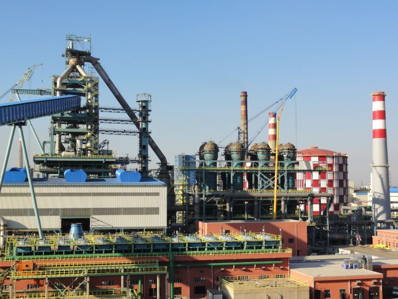 NTS raw material yard, sintering plant, BF iron-making plant, gas holder and ...