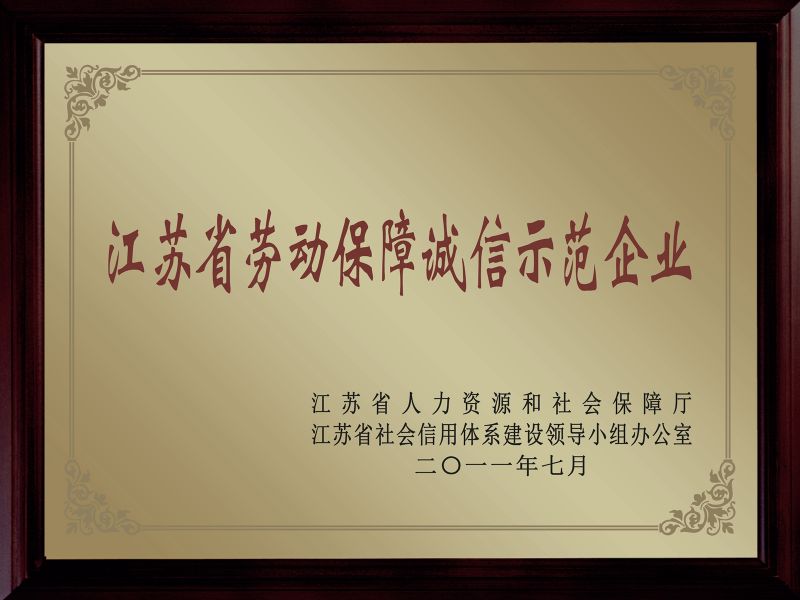 江苏省劳动保障诚信示范企业