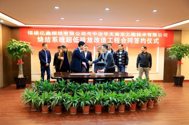 1月8日上午,中冶华天与亿鑫钢铁在亿鑫钢铁厂举行《福建亿鑫钢铁有限公司烧结系统超低排放改造工程总承包项目》合同签约仪式,公司党委书记、董事长田野和亿鑫钢铁总经理刘登科分别代表双方签字,签约仪式前,双方进行了亲切友好的会谈交流。