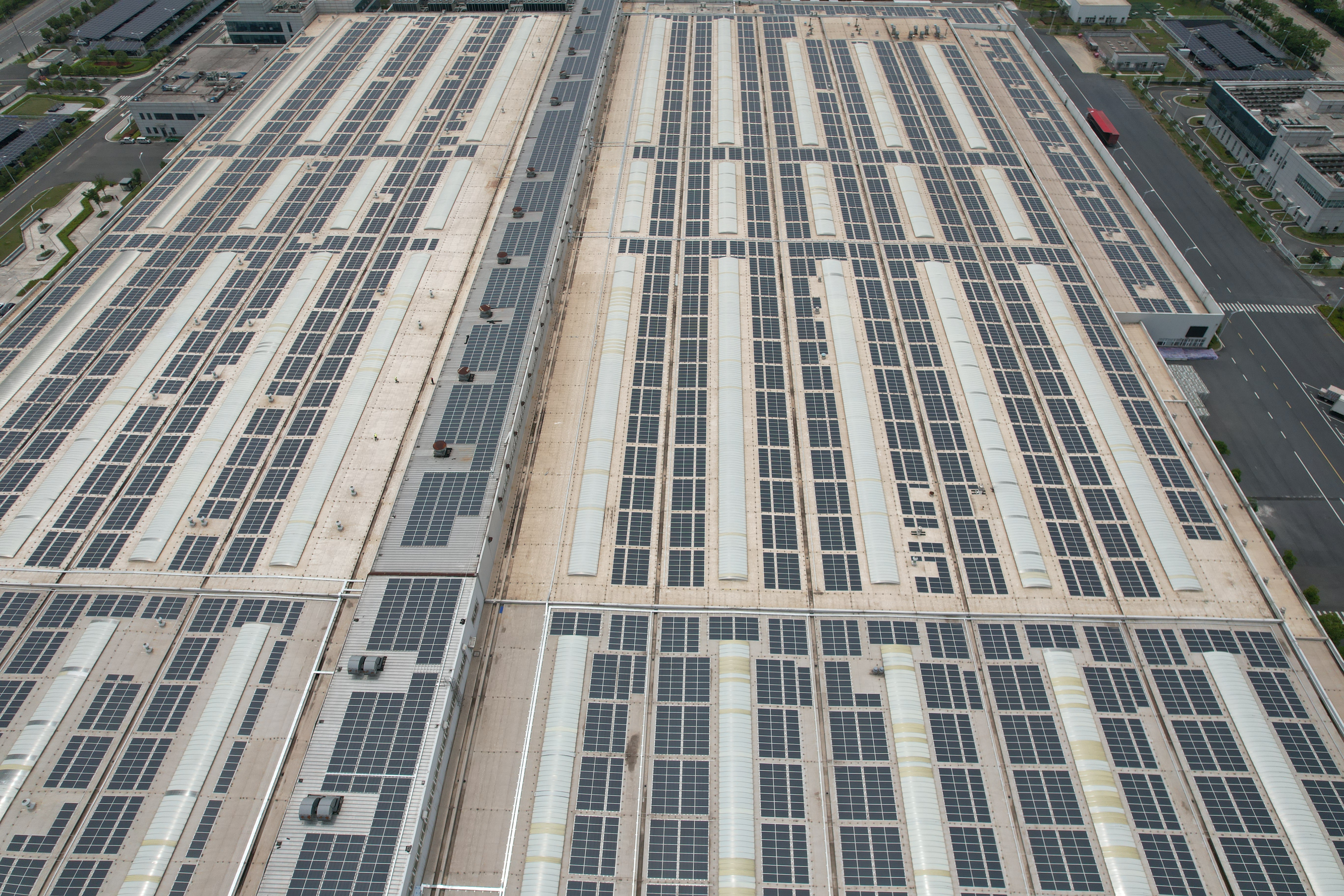 2022年12月,吉利融和义乌(P3、M3和DHT)基地分布式光伏发电项目并网发电。该项目是目前国内装机容量最大的柔性屋面光伏项目,是中冶华天与国内著名企业吉利公司开创首次合作、首次在柔性屋面施工作业、首次安装柔性组件、首次安装BIPV车棚等多个首次的项目。项目总装机容量为18.292MW,采用柔性组件3万余块,组串式并网逆变器70余台。项目建成后,预计年总发电量1809.44万千瓦时,同燃煤火电站相比,每年可为国家节约标准煤5518.79吨,减少排放二氧化碳14728.85吨、二氧化硫112.18吨、氮氧化物37.98吨,环境效益十分显著。
