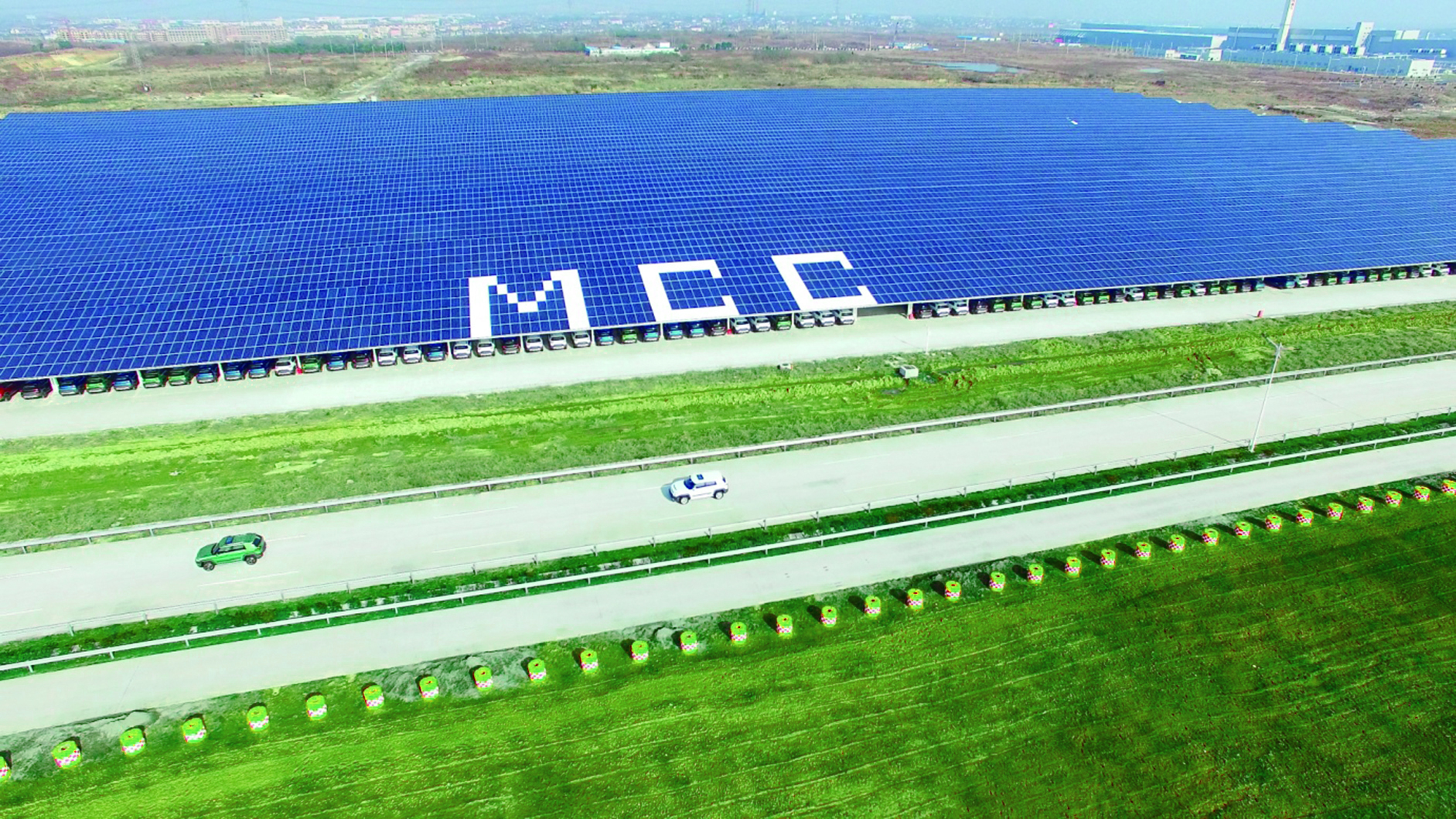 2016年11月,中冶华康北汽(镇江)生产基地10MWp分布式光伏电站项目并网发电。该项目为中冶华天按照光伏行业通常商业模式投资、设计、建设、运营的第一座分布式光伏电站,也是在北汽停车场建设的第一个光伏电站项目,属于中大规模“自发自用,余电上网”消纳模式的分布式光伏工程。工程总装机容量9.8MWp,占地约10万余平米,主体由13座光伏车棚构成,安装光伏组件30708块,覆盖约4000个车位,预期年发电量941.6万千瓦时,设计寿命25年,其所发绿色能源主要用于北汽镇江汽车公司生产使用,部分注入公共电网,实现“光伏+制造”模式。