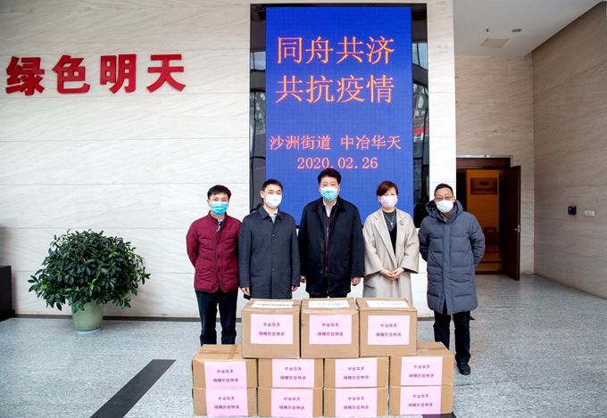 同舟共济,共抗疫情。2月26日上午,中冶华天在南京办公园区向园区所在的南京建邺区沙洲街道捐赠一次性医用外科口罩6000只、免洗手消毒凝胶200瓶,为该街道打赢疫情防控阻击战出一份力。中冶华天党委书记、董事长田野和沙洲街道工委书记熊俊分别代表双方完成捐赠。