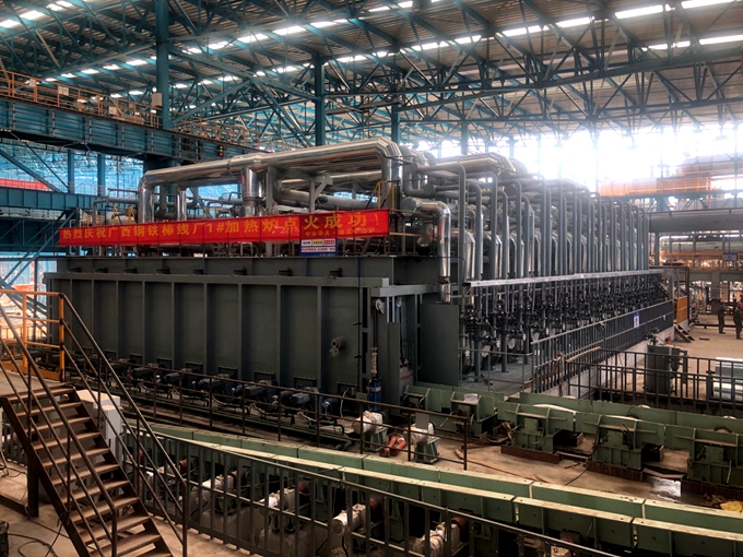 该项目设计加热钢坯能力为棒材100万吨/年/线,线材60万吨/年/线。工程涉及到七座步进梁式加热炉设计(提加热炉土建资料委托)、制造、施工安装、砌筑、涂装、冷态调试、烘炉、人员培训,直至正常投产的全承包交钥匙工程。该加热炉集成了数字化脉冲控制技术、低NOx燃烧技术、余热资源梯级极限回收技术、智能燃烧控制技术、全纤维炉顶技术、节能型液压系统、智能润滑系统等当前最顶尖的技术,代表了加热炉节能、环保及数字化、智能化的新方向。