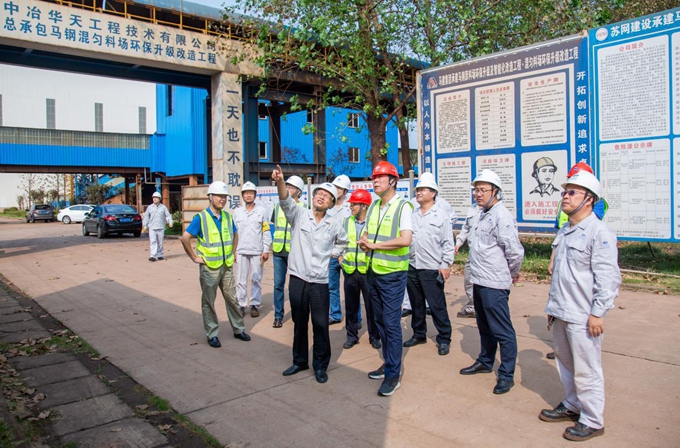 8月24日下午,中冶华天党委书记、董事长田野和副董事长王建国一行前往公司马钢项目现场,仔细察看了马钢混匀料场环保升级改造工程和马钢A#B#烧结机烟气脱硫脱硝及超低排放工程,召集项目部听取项目进展情况,针对现场安全工作提出具体要求。