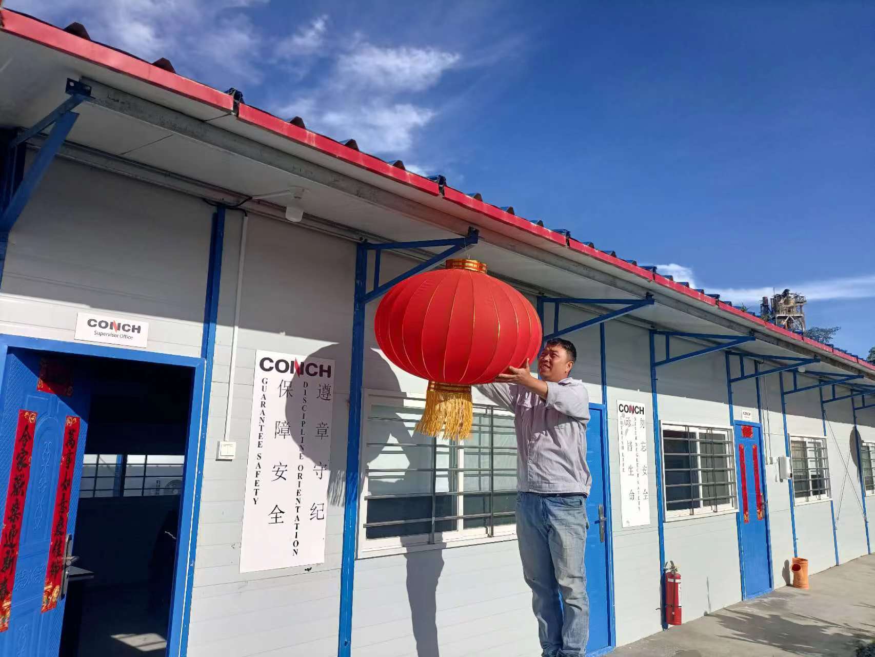 与海螺水泥合作的乌兹别克斯坦塔什干、安集延和菲律宾水泥生产线3个项目,目前正处于施工高峰期,现场12人坚守岗位,无一人请假回国,项目负责人既有公司劳动模范汪国方,也有首次出国负责项目的刘仕成和杨平。春节期间,项目部组织贴春联、挂灯笼,用一个个“中国红”装点着异乡的家园。同时,所有巡查、验收、旁站和值班等工作有条不紊,只为服务好海螺业主,实现“现场循环市场”。