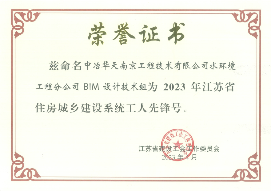 5月12日,江苏省建设工会工作委员会举行第九届江苏省勘察设计行业BIM大赛的颁奖大会,中冶华天水环境工程分公司BIM设计技术组获得了“2023年江苏省住房城乡建设系统工人先锋号”。此次获得该称号,既彰显了中冶华天水环境技术团队的实力,又树立了华天职工的先锋形象。