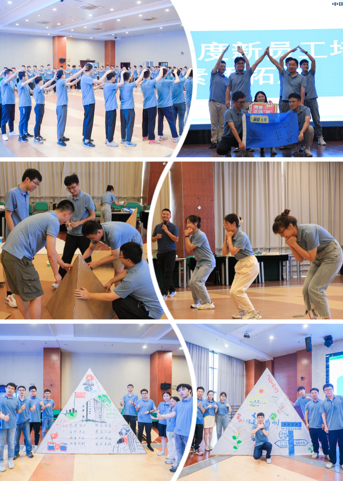 倾力协作,提升团队精神。本次培训的最后一节课安排了素质拓展活动。任务之一是打造“华天”金字塔,团队成员先共同制定整体方案,再利用纸板材料,建造一个大金字塔,并将华天的战略规划、企业文化、主营业务等内容融入其中。大家分工明确,互帮互助,将几何学与团队文化建设结合,共同打造出一个个充满艺术感的作品。在此过程中,每位员工都充分发挥了自我价值,收获了团队归属感和凝聚力。