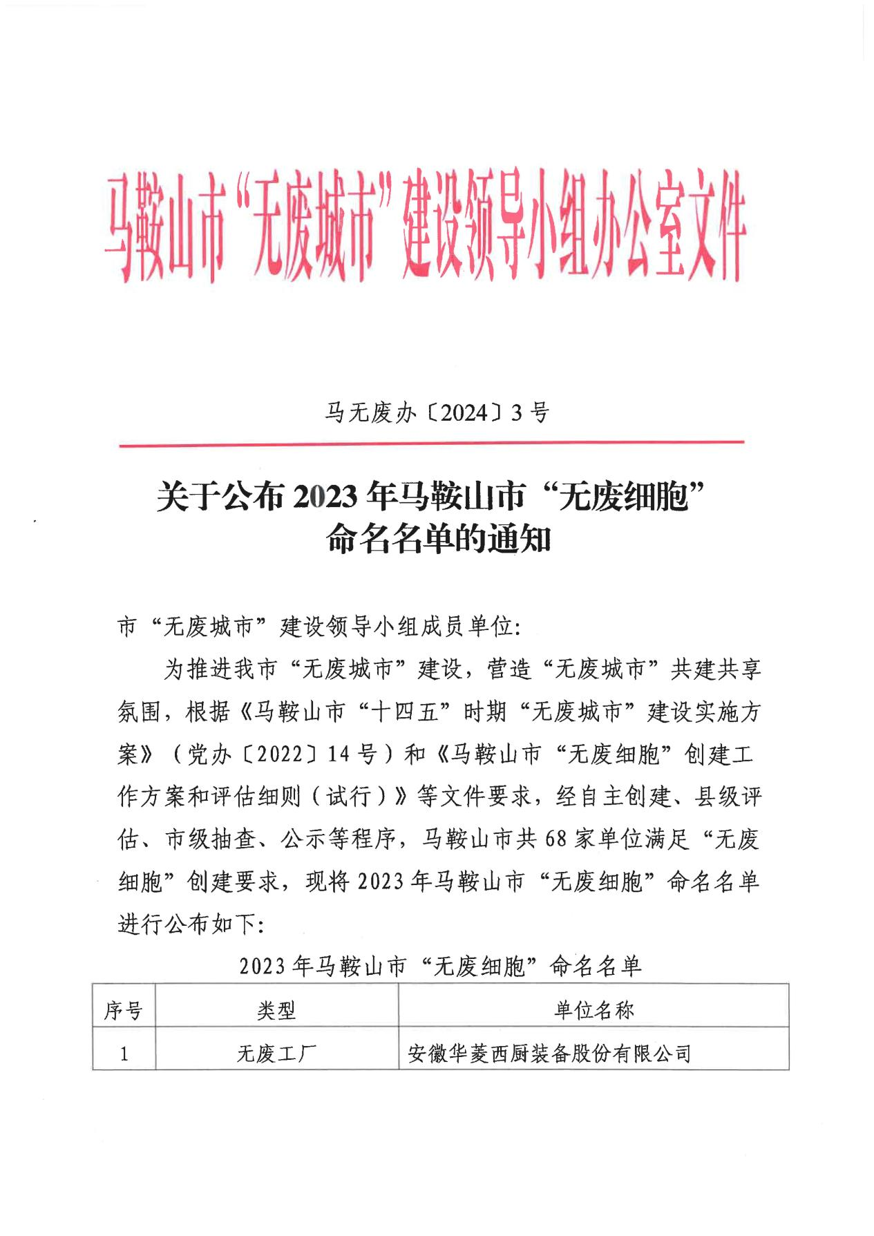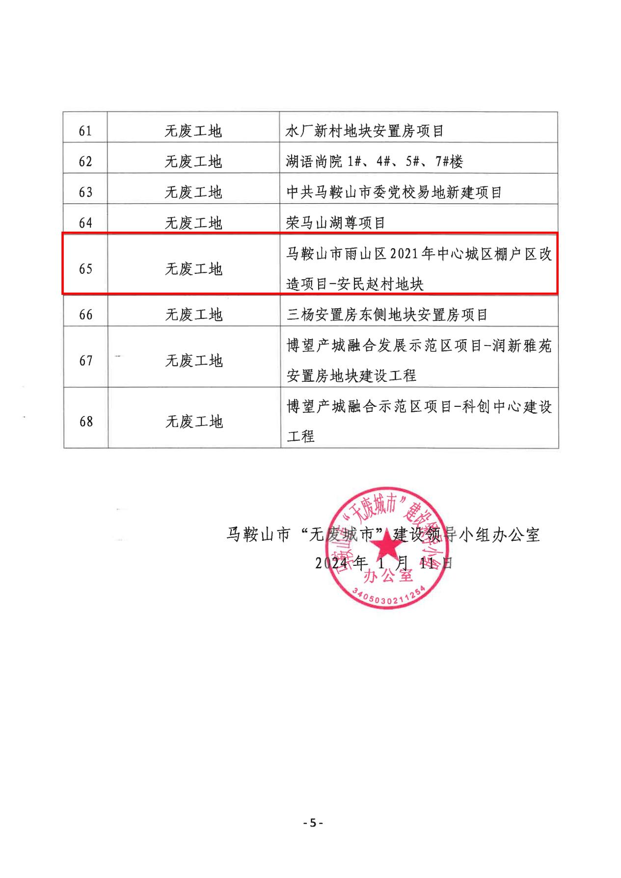 1月12日,2023年马鞍山市“无废细胞”命名名单公布,中冶华天EPC承建的马鞍山市雨山区2021年中心城区棚户区改造项目-安民赵村地块项目荣获“无废细胞”称号,以实际行动助力马鞍山市“无废城市”建设,持续擦亮“中冶华天,绿色明天”品牌。