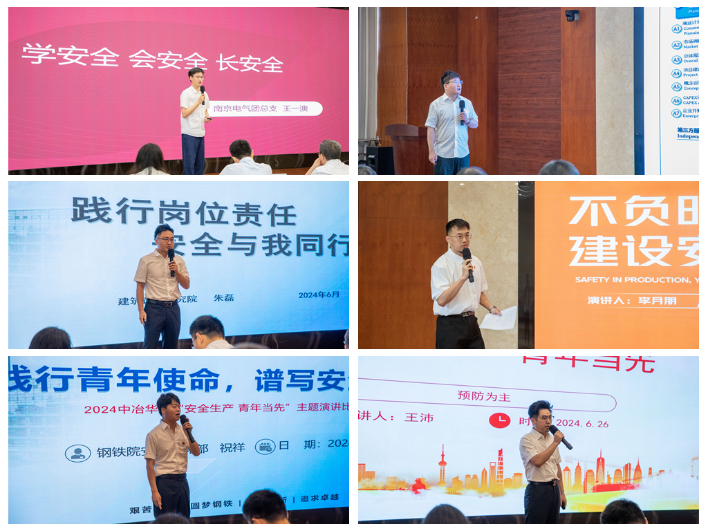 活动邀请公司安全总监和安全生产监督管理部、钢铁院、建筑院、工环分公司、公司团委等相关负责人和专家组成评委组,从主题观点、演讲内容、表达技巧和演绎效果四个维度对选手们的演讲进行打分,并对活动和选手表现进行了点评。最终,钢铁设计研究总院祝祥、工业环境能源分公司周志超、南京电气公司王一澳等三位选手荣获“优胜奖”,建筑设计研究院骆晓东和朱磊、国际工程咨询分公司刘义隆、钢铁设计研究总院朱天昊、设备分公司孙琪等五位选手荣获“优秀奖”。