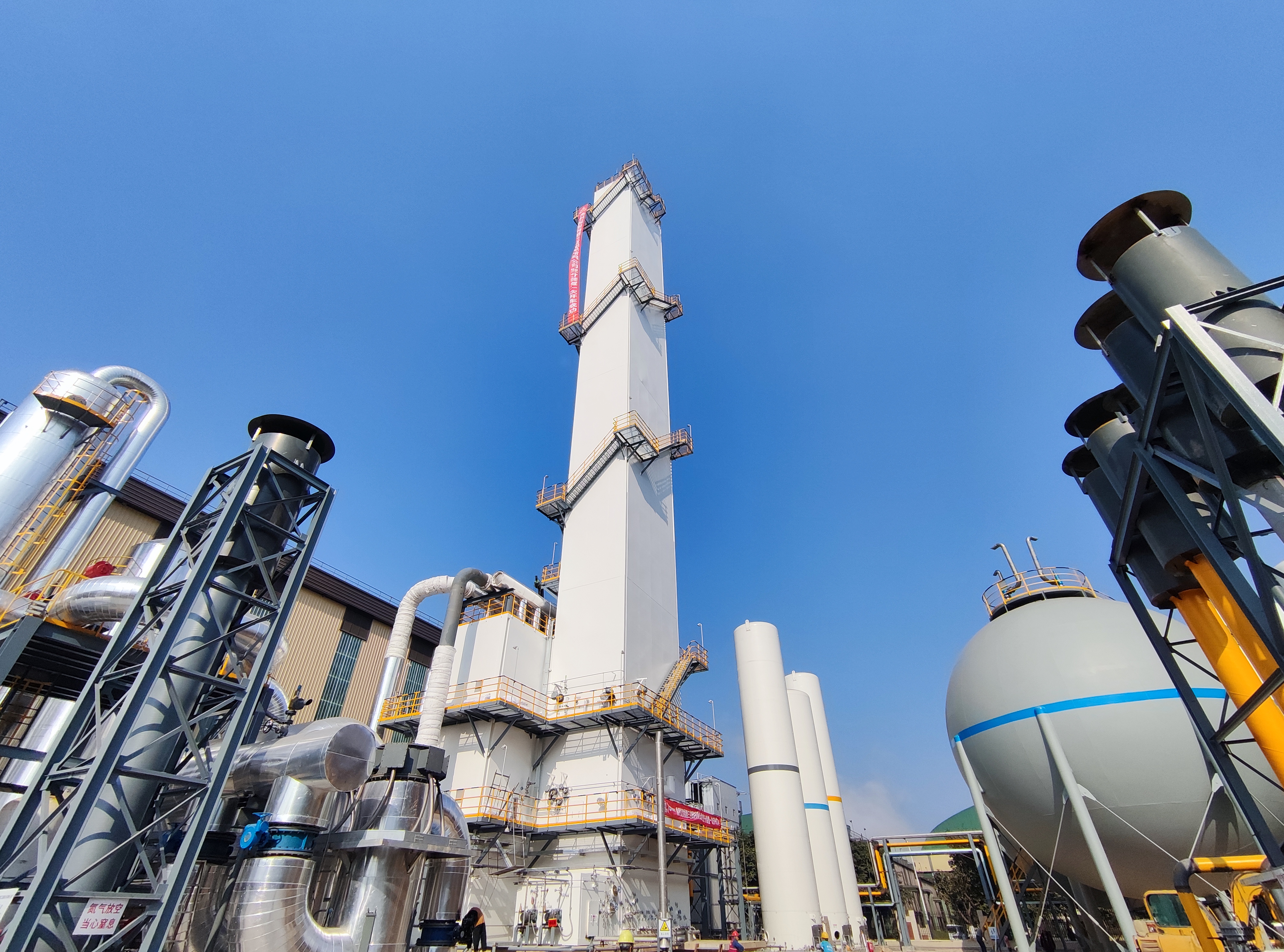 据了解,该项目位于福建省漳州市三宝钢铁厂内,是福建三宝集团探索创新之路、实现绿色发展的重要项目,主要为配套正在建设的高牌号、高磁感硅钢用板坯生产线,建设一套KDON(Ar)-15000/25000/500深冷空分制氧装置,向全厂输送氧气、氮气等。项目采用分子筛吸附预净化、增压透平膨胀机、全填料塔精馏制取氧、氮氩产品等先进工艺流程,配置液体贮存、气体压缩储存及调压系统,设计应用全BIM三维正向设计和模拟计算技术,通过不断优化总图方案,精心布置管路系统,大幅降低运行能耗,确保安全性能优、可靠性高、节能效果明显。项目投产后,将进一步保障质优量足的生产用气,助力业主调整产能结构,升级产品质量,实现绿色能源、绿色冶炼和绿色产品“三绿”目标。