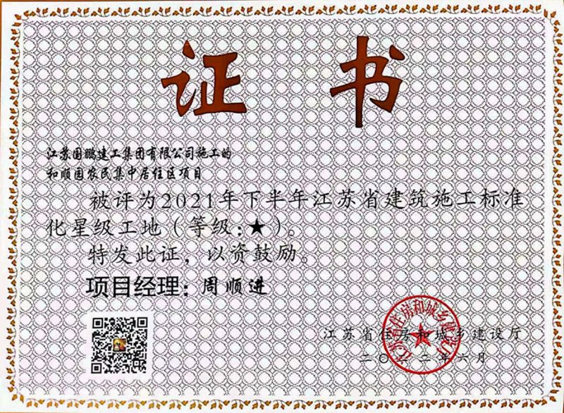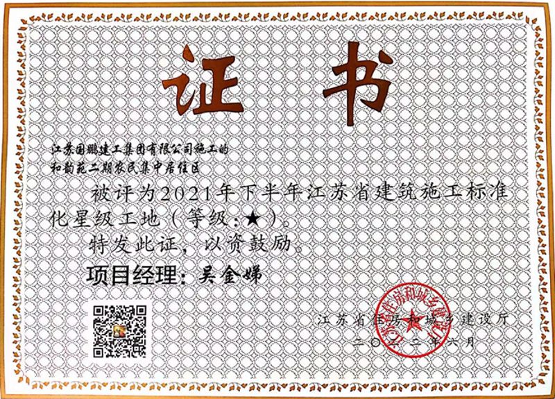 8月11日,中冶华天总承包淮安市和平镇和韵苑二期农民集中居住区项目、淮安市和平镇和顺苑农民集中居住区项目双双收到“2021年下半年江苏省建筑施工标准化星级工地”荣誉证书,有力展现了中冶华天项目建设与管理水平,持续唱响“中冶华天,绿色明天”品牌之歌。